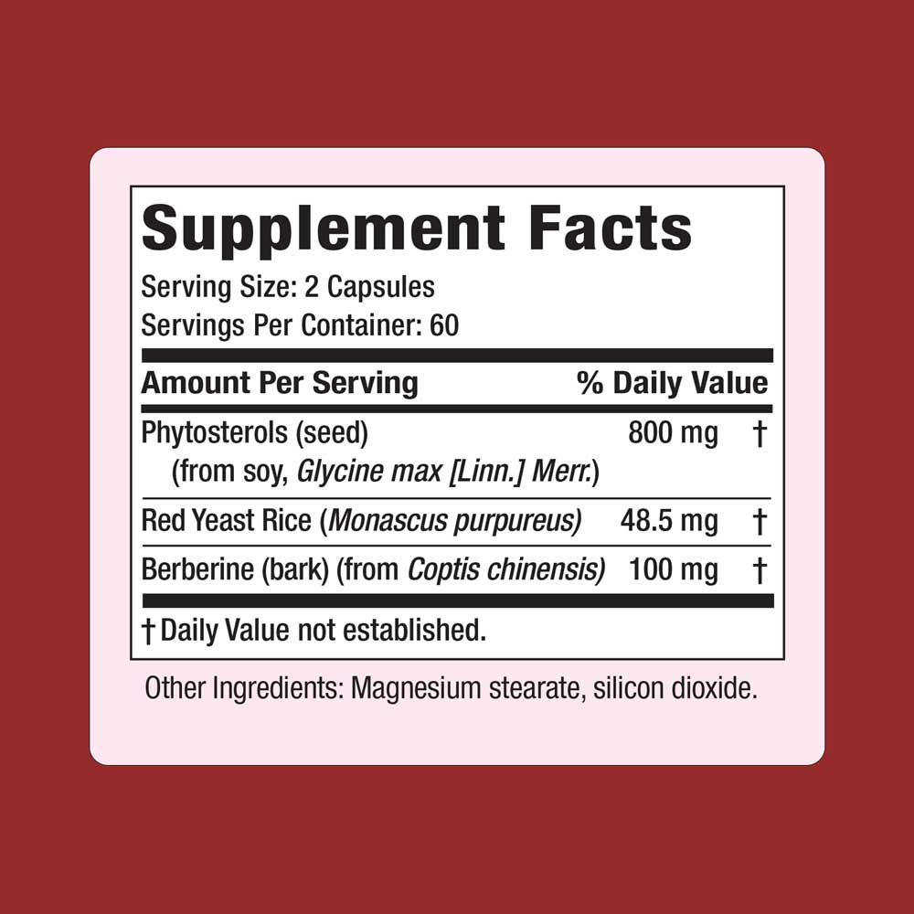 This triple-action formula is specifically designed to synergistically help you achieve healthy cholesterol, naturally. Berberine enhances cholesterol metabolism, red yeast rice inhibits unhealthy cholesterol synthesis and plant sterols/phytosterols enhances healthy dietary cholesterol absorption in the intestine. Clinical studies on these ingredients shows amazing cholesterol results.